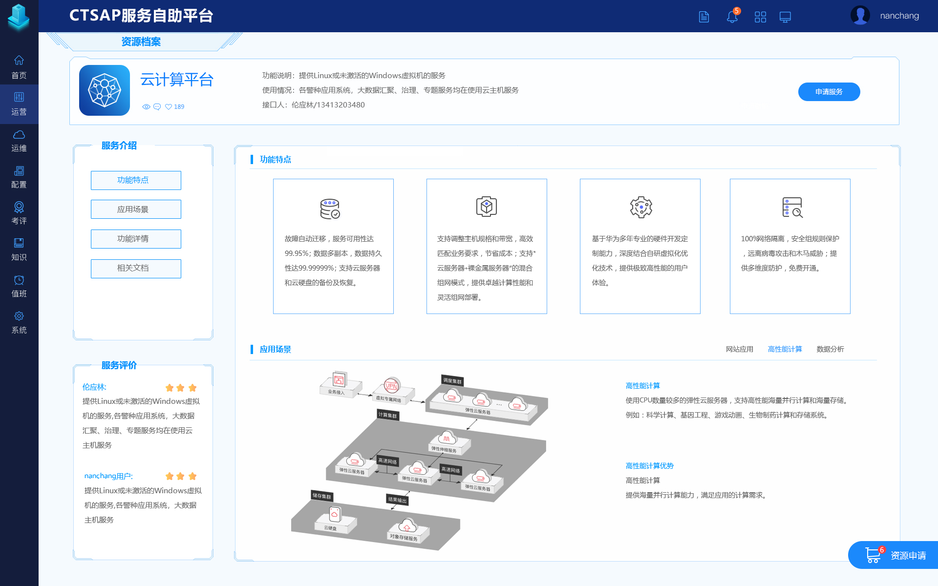 服务资源申请线上化、自主化,减少繁杂流程。