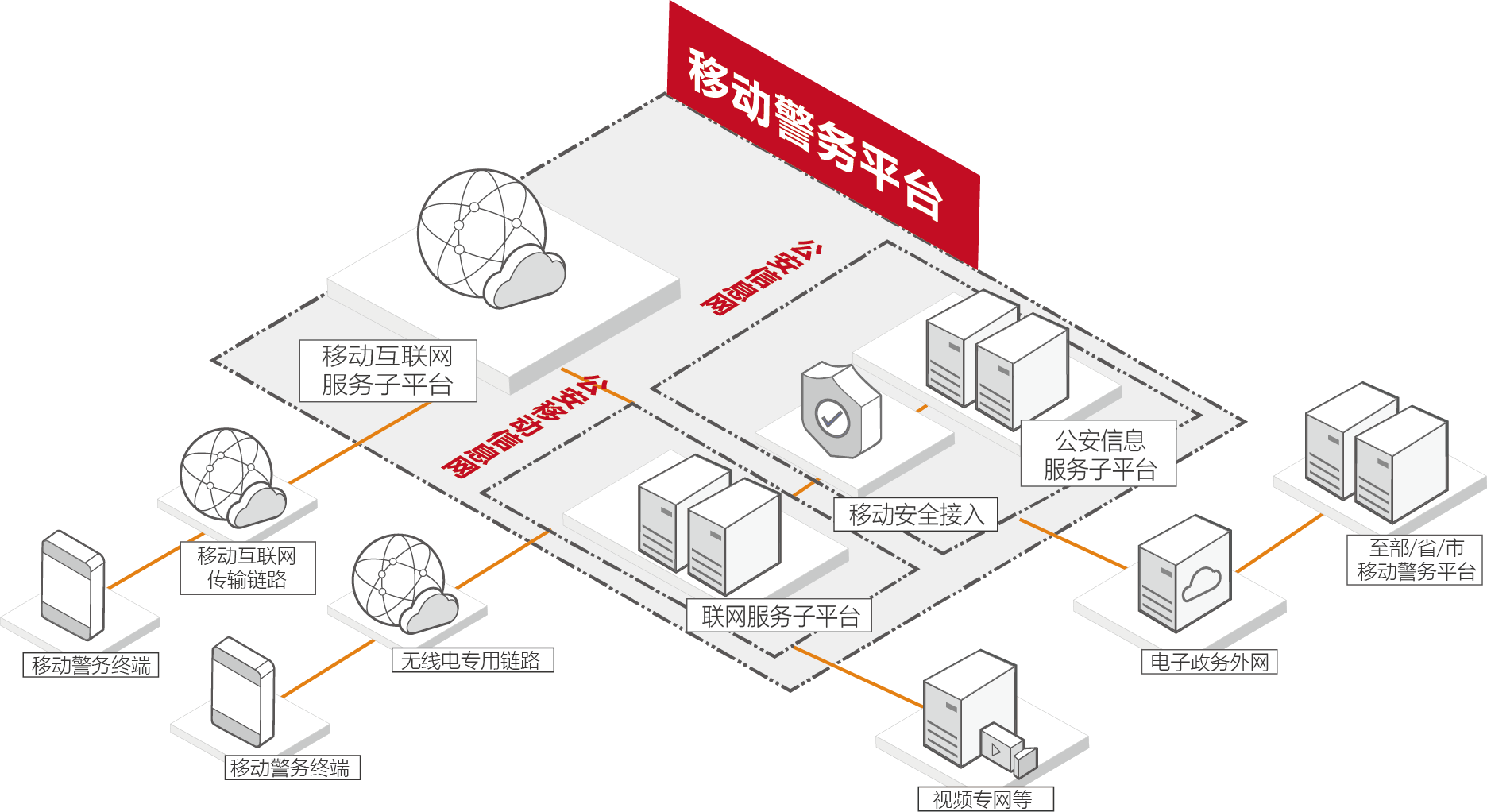 基于5G公众移动通信网络,按照“统一平台接入、统一集中管控、统一标准规范”的原则,在大数据、云计算等先进技术和完备的安全技术支撑下,构建部、省、市三级全方位的新一代移动警务总体技术解决方案。